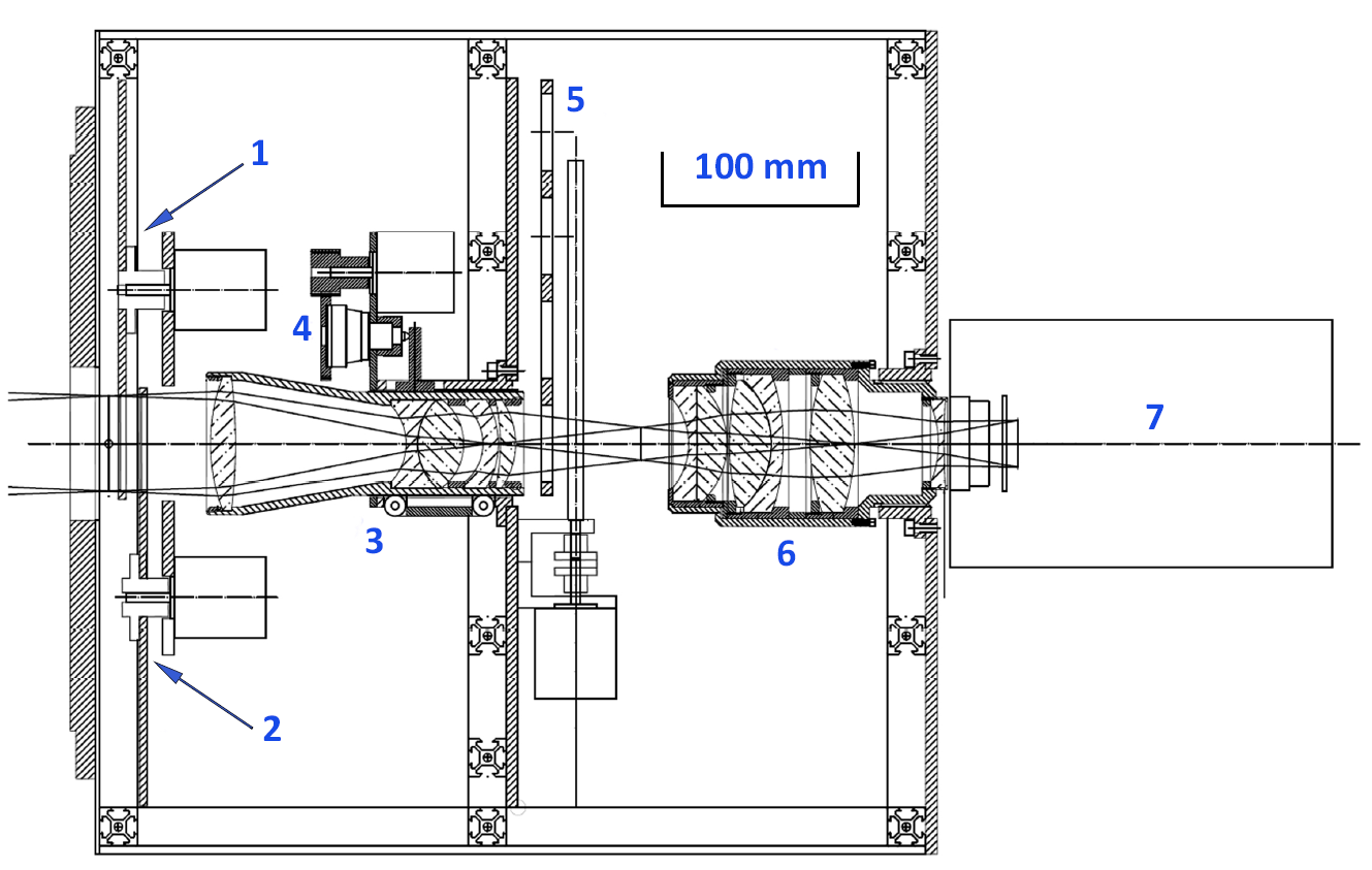 mode changing linear guide carriage; (6) — camera; (7) — the CCD detector.