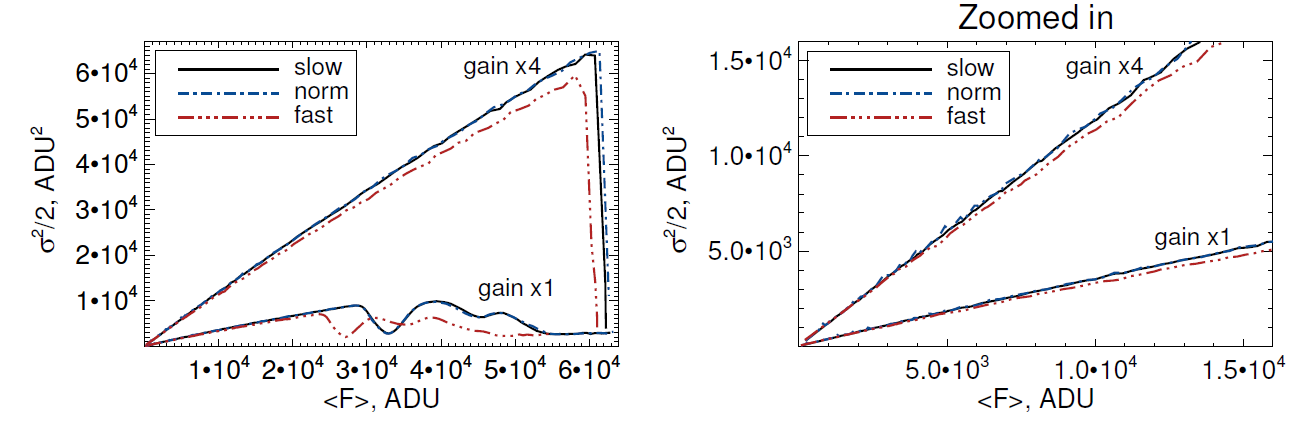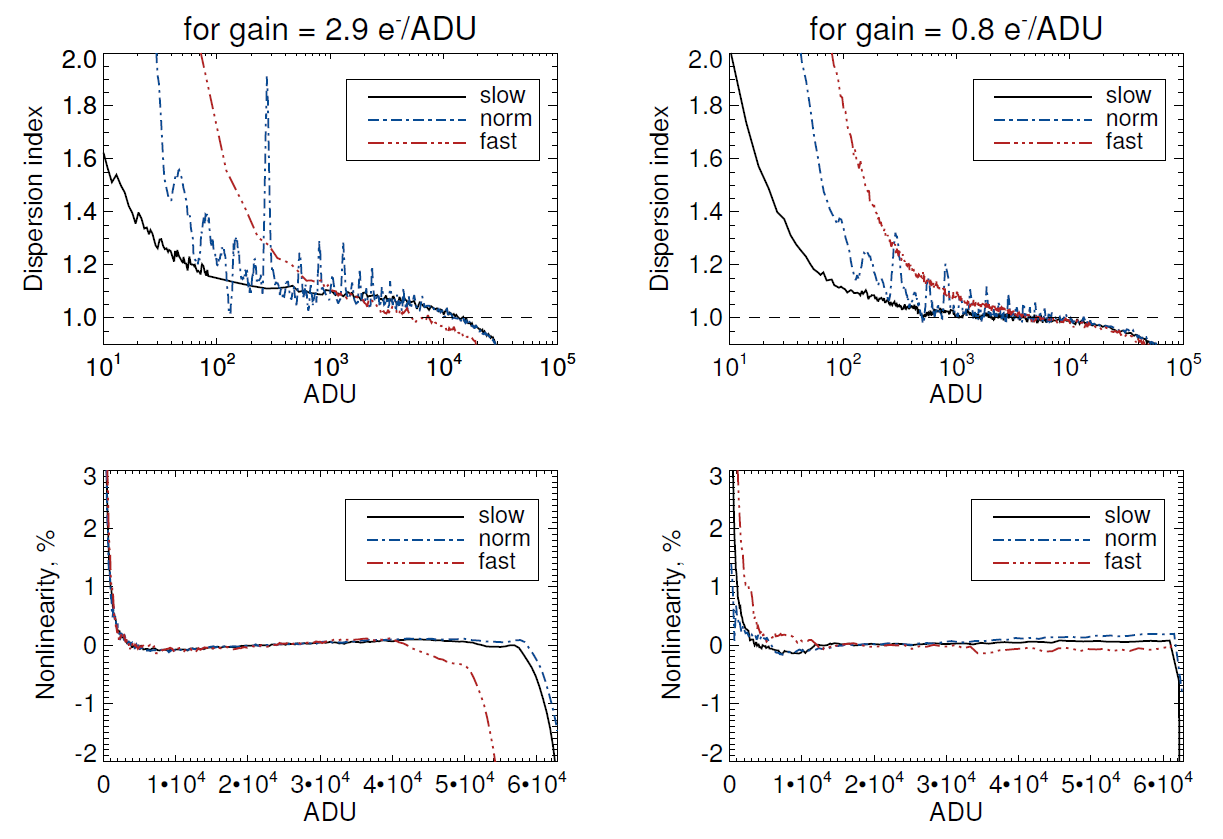 sec) and ’slow’ (90 sec). The value of the measured readnoise for these modes