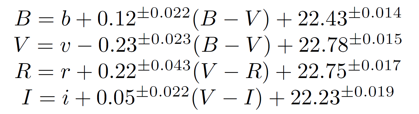 medium-band filters with a seeing of 1" for 20 minutes of total exposure,