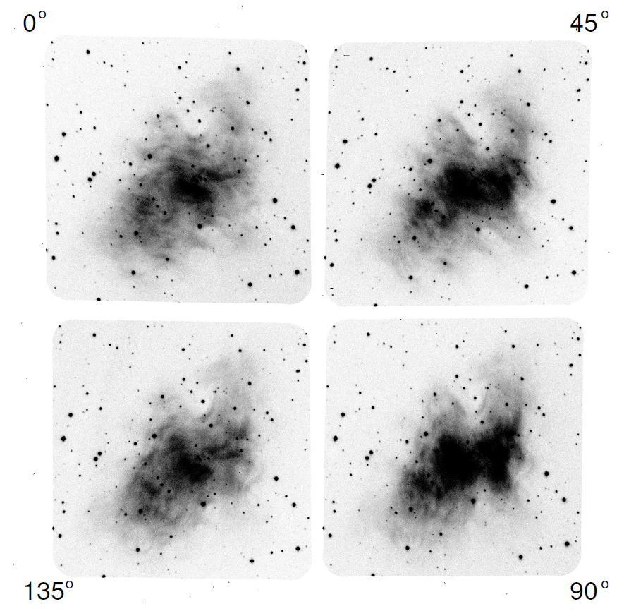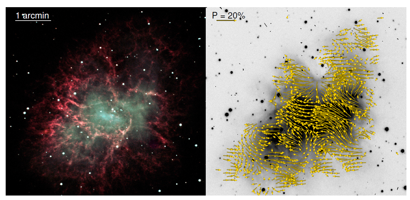 For the Crab Nebula M1, a map of the change in the polarization of the