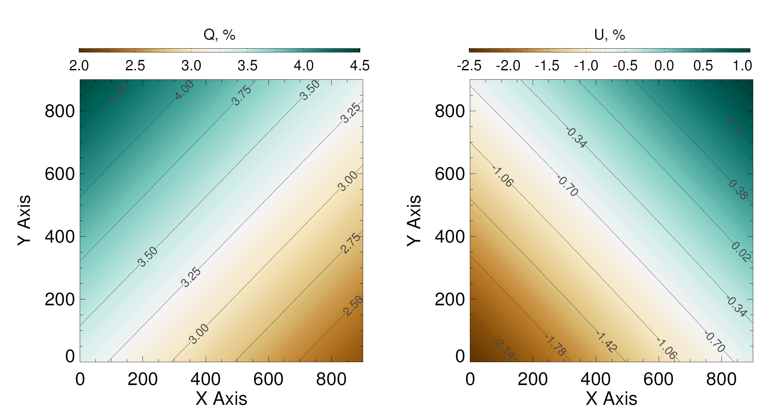 We have described the Q and U changes by 1st order surfaces (Fig. 12). After correcting observations of unpolarized