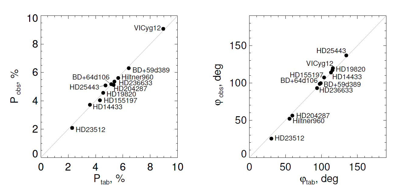 set of standard high polarization stars (after correction for instrumental