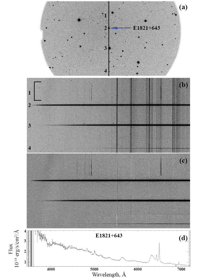 spectroscopy of the E1821+643 quasar: (a) a fragment of a direct image in the R