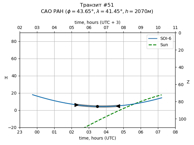 | Object | Date t_1 (UTC) | Date t_mid (UTC) | Date t_4 (UTC) | Day t_1 (UTC) | Time t_1 (UTC) | Time t_mid (UTC) | Time t_4 (UTC) | Time t_1 (UTC+3) | Time t_mid (UTC+3) | Time t_4 (UTC+3) | ra | dec | mag_0 | dep (mag) | dur (h) | Visible (SAO) |