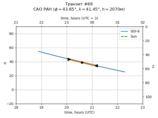 | Object | Date t_1 (UTC) | Date t_mid (UTC) | Date t_4 (UTC) | Day t_1 (UTC) | Time t_1 (UTC) | Time t_mid (UTC) | Time t_4 (UTC) | Time t_1 (UTC+3) | Time t_mid (UTC+3) | Time t_4 (UTC+3) | ra | dec | mag_0 | dep (mag) | dur (h) | Visible (SAO) |