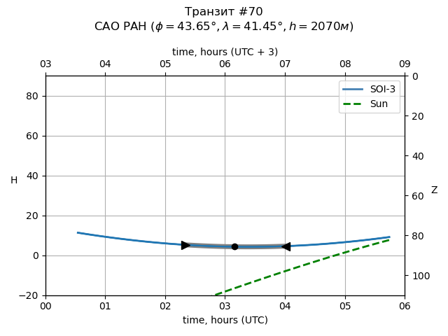 | Object | Date t_1 (UTC) | Date t_mid (UTC) | Date t_4 (UTC) | Day t_1 (UTC) | Time t_1 (UTC) | Time t_mid (UTC) | Time t_4 (UTC) | Time t_1 (UTC+3) | Time t_mid (UTC+3) | Time t_4 (UTC+3) | ra | dec | mag_0 | dep (mag) | dur (h) | Visible (SAO) |