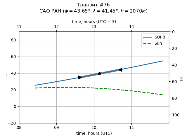 | Object | Date t_1 (UTC) | Date t_mid (UTC) | Date t_4 (UTC) | Day t_1 (UTC) | Time t_1 (UTC) | Time t_mid (UTC) | Time t_4 (UTC) | Time t_1 (UTC+3) | Time t_mid (UTC+3) | Time t_4 (UTC+3) | ra | dec | mag_0 | dep (mag) | dur (h) | Visible (SAO) |