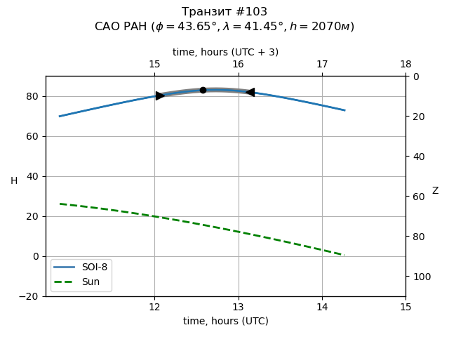 | Object | Date t_1 (UTC) | Date t_mid (UTC) | Date t_4 (UTC) | Day t_1 (UTC) | Time t_1 (UTC) | Time t_mid (UTC) | Time t_4 (UTC) | Time t_1 (UTC+3) | Time t_mid (UTC+3) | Time t_4 (UTC+3) | ra | dec | mag_0 | dep (mag) | dur (h) | Visible (SAO) |