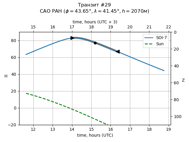 | Object | Date t_1 (UTC) | Date t_mid (UTC) | Date t_4 (UTC) | Day t_1 (UTC) | Time t_1 (UTC) | Time t_mid (UTC) | Time t_4 (UTC) | Time t_1 (UTC+3) | Time t_mid (UTC+3) | Time t_4 (UTC+3) | ra | dec | mag_0 | dep (mag) | dur (h) | Visible (SAO) |
