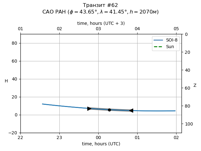| Object | Date t_1 (UTC) | Date t_mid (UTC) | Date t_4 (UTC) | Day t_1 (UTC) | Time t_1 (UTC) | Time t_mid (UTC) | Time t_4 (UTC) | Time t_1 (UTC+3) | Time t_mid (UTC+3) | Time t_4 (UTC+3) | ra | dec | mag_0 | dep (mag) | dur (h) | Visible (SAO) |