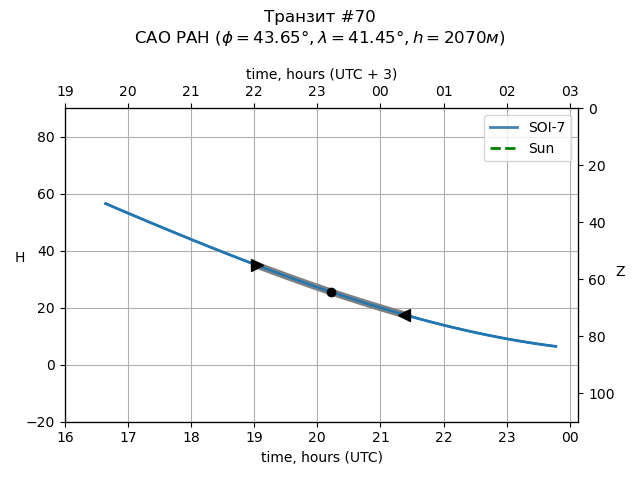 | Object | Date t_1 (UTC) | Date t_mid (UTC) | Date t_4 (UTC) | Day t_1 (UTC) | Time t_1 (UTC) | Time t_mid (UTC) | Time t_4 (UTC) | Time t_1 (UTC+3) | Time t_mid (UTC+3) | Time t_4 (UTC+3) | ra | dec | mag_0 | dep (mag) | dur (h) | Visible (SAO) |