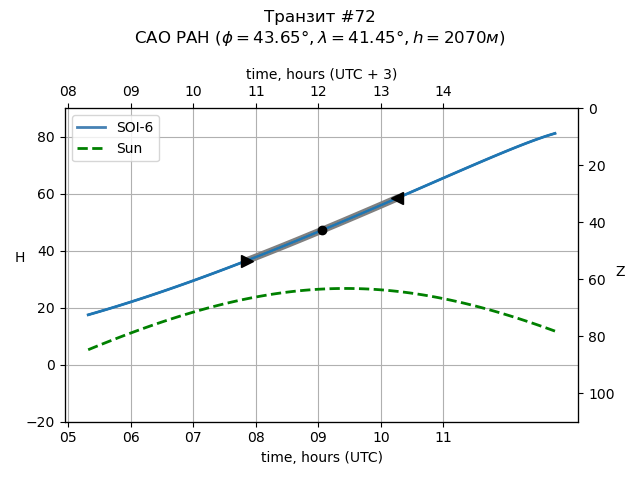 | Object | Date t_1 (UTC) | Date t_mid (UTC) | Date t_4 (UTC) | Day t_1 (UTC) | Time t_1 (UTC) | Time t_mid (UTC) | Time t_4 (UTC) | Time t_1 (UTC+3) | Time t_mid (UTC+3) | Time t_4 (UTC+3) | ra | dec | mag_0 | dep (mag) | dur (h) | Visible (SAO) |