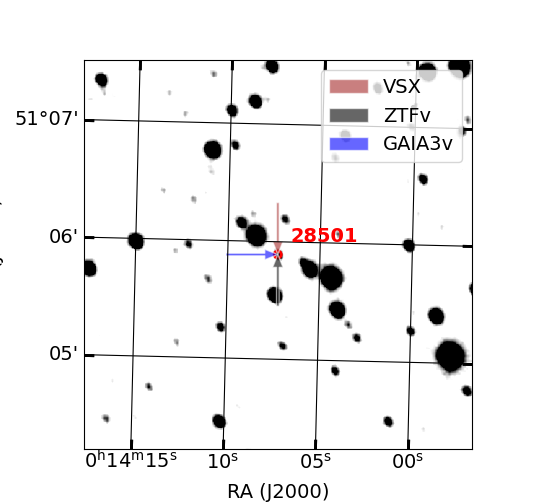Arrows show position of known variable stars by other catalogs (if exist)
