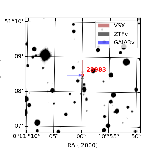 Arrows show position of known variable stars by other catalogs (if exist)