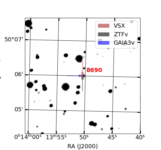 Arrows show position of known variable stars by other catalogs (if exist)