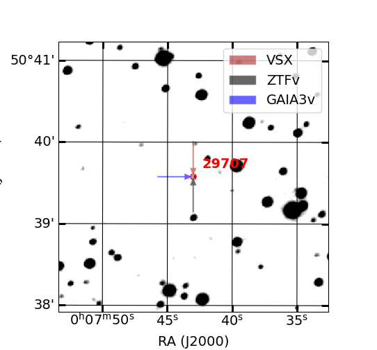 Arrows show position of known variable stars by other catalogs (if exist)