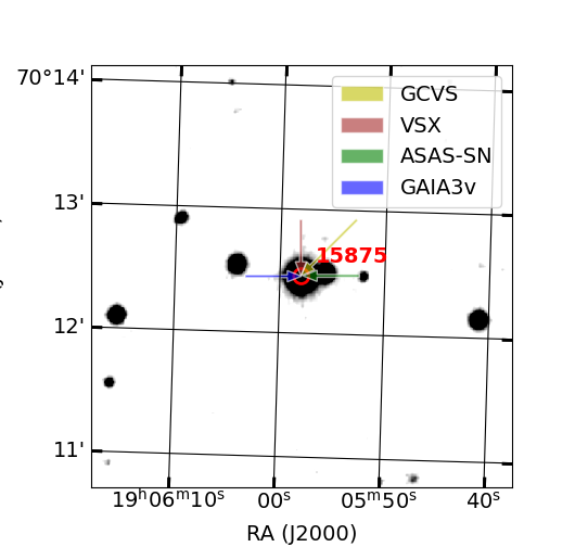 Arrows show position of known variable stars by other catalogs (if exist)