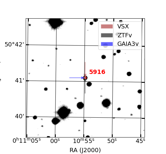Arrows show position of known variable stars by other catalogs (if exist)
