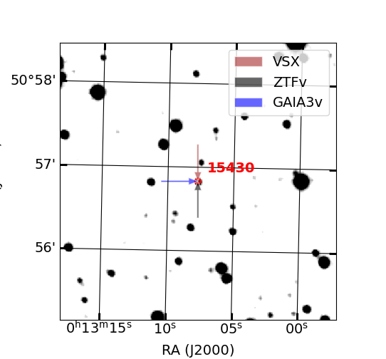 Arrows show position of known variable stars by other catalogs (if exist)