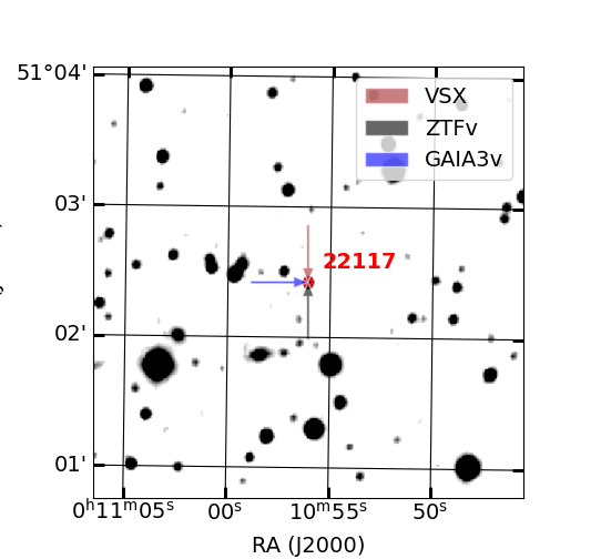 Arrows show position of known variable stars by other catalogs (if exist)