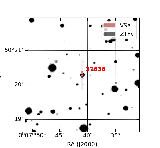 Arrows show position of known variable stars by other catalogs (if exist)